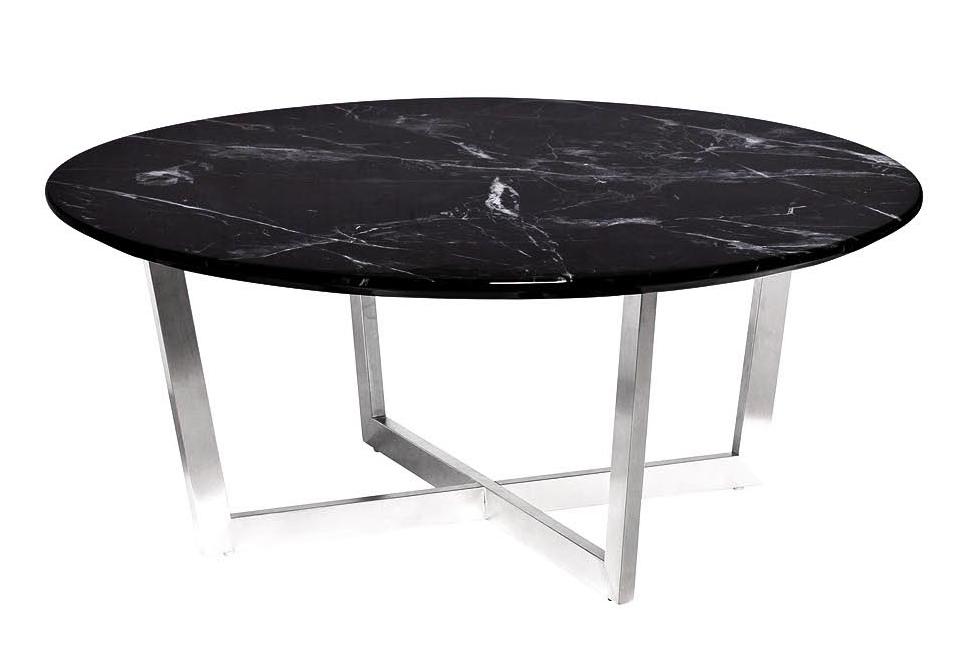 Благородную красоту журнального стола Nero 33FS-CT2029BS со столешницей из МДФ с мраморным принтом черного цвета с белыми прожилками и основанием из нержавеющей стали цвета матовый хром оценят люди с тонким художественным вкусом.
