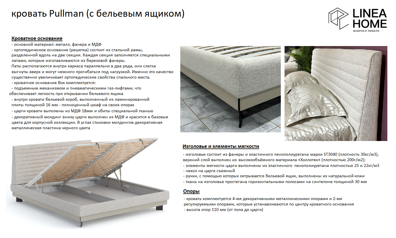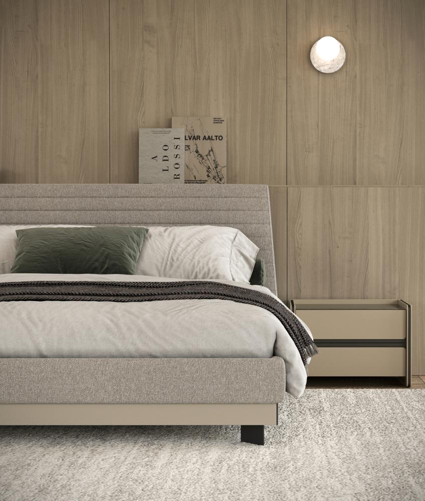 В этой модели сошлись два настроения: мягкость и точная геометрия. Широкое изголовье с горизонтальной простёжкой делает композицию более графичной и визуально вытягивает пространство, а лёгкий наклон и объёмный наполнитель дарят комфортную опору — для чтения, отдыха, тишины.