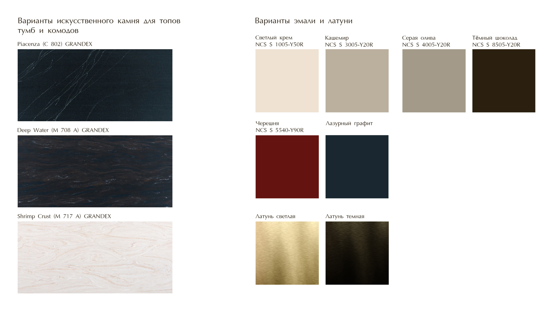 Материал: МДФ + эмаль, Искусственный камень, Латунь (светлая / темная)