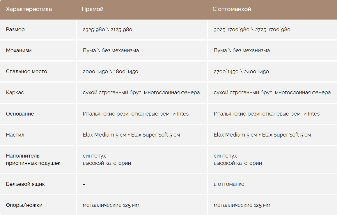 — Благодаря оттоманке, на диване можно разместиться в положении Relax (Рела́кс) – т.е. принять положение полулежа вытянув ноги