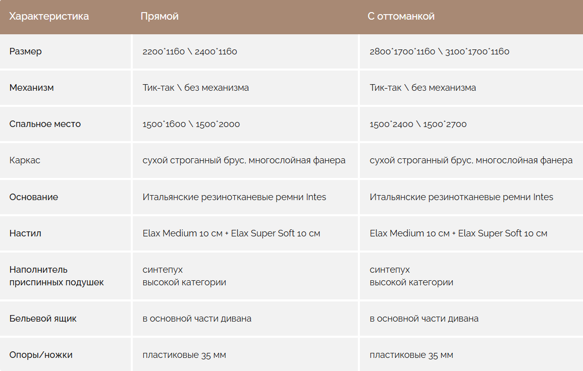 — Благодаря оттоманке, на диване можно разместиться в положении Relax (Рела́кс) – т.е. принять положение полулежа вытянув ноги