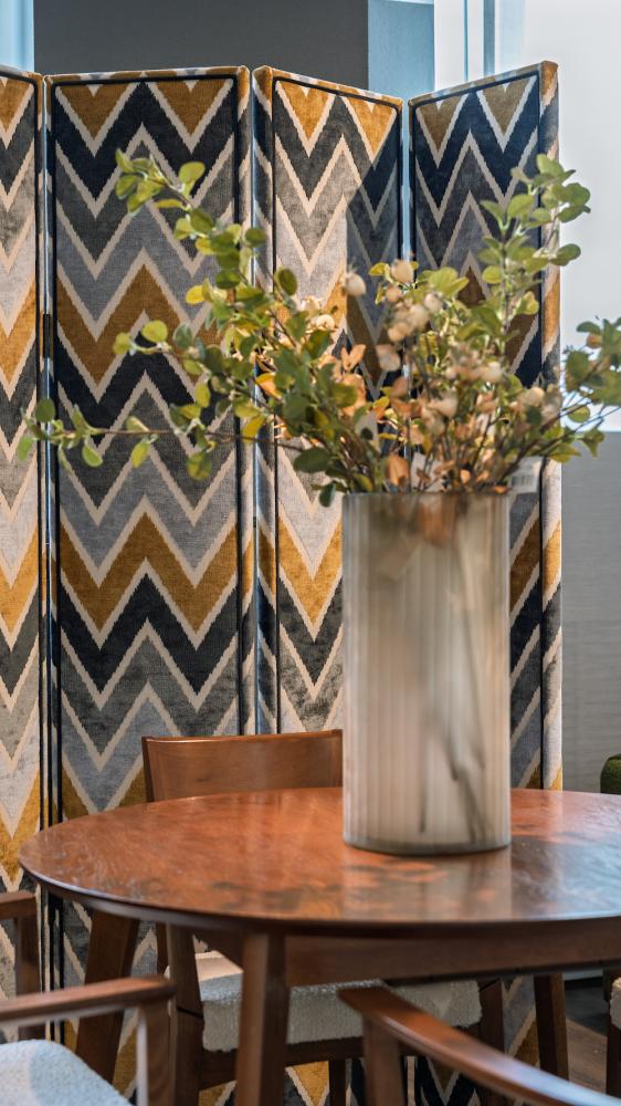 Декоративная эксклюзивная ширма с четырьмя створками. Ширма двухсторонняя, с её помощью можно зонировать пространство комнаты. Яркий орнамент создаст необычную игривую атмосферу, сделает ваш интерьер неповторимым и индивидуальным.