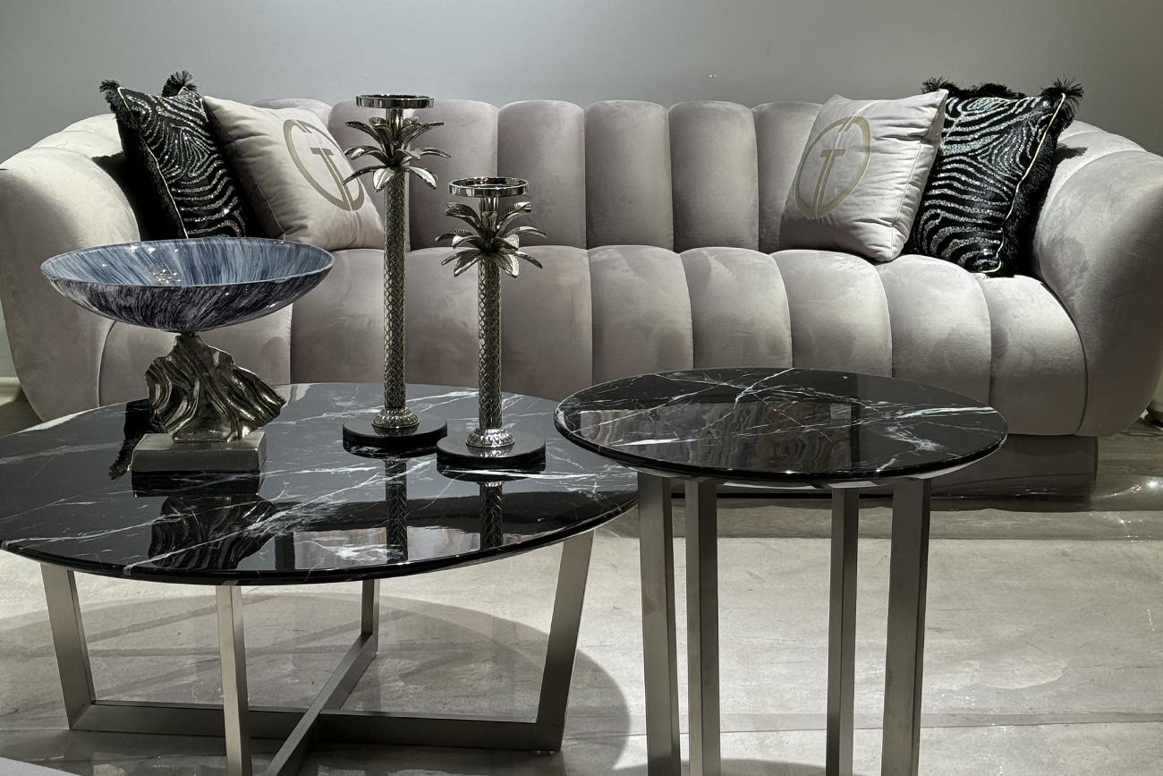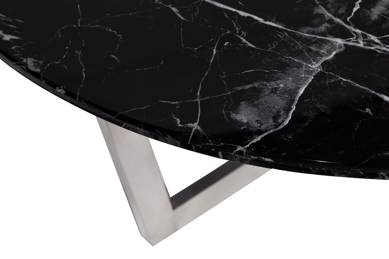Благородную красоту журнального стола Nero 33FS-CT2029BS со столешницей из МДФ с мраморным принтом черного цвета с белыми прожилками и основанием из нержавеющей стали цвета матовый хром оценят люди с тонким художественным вкусом.