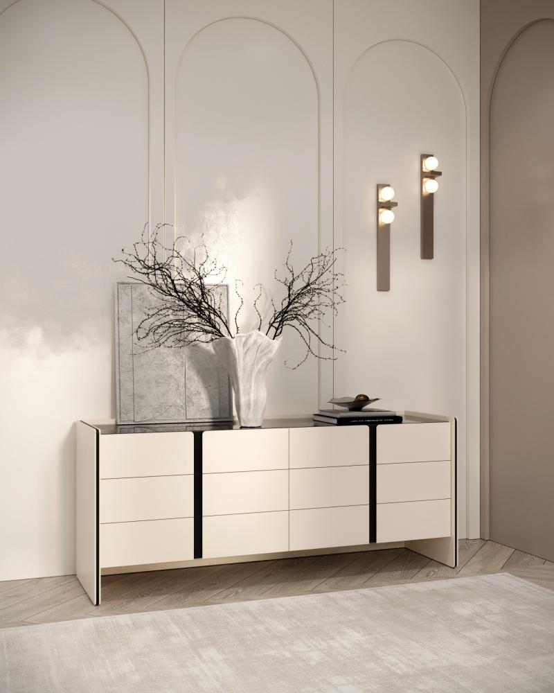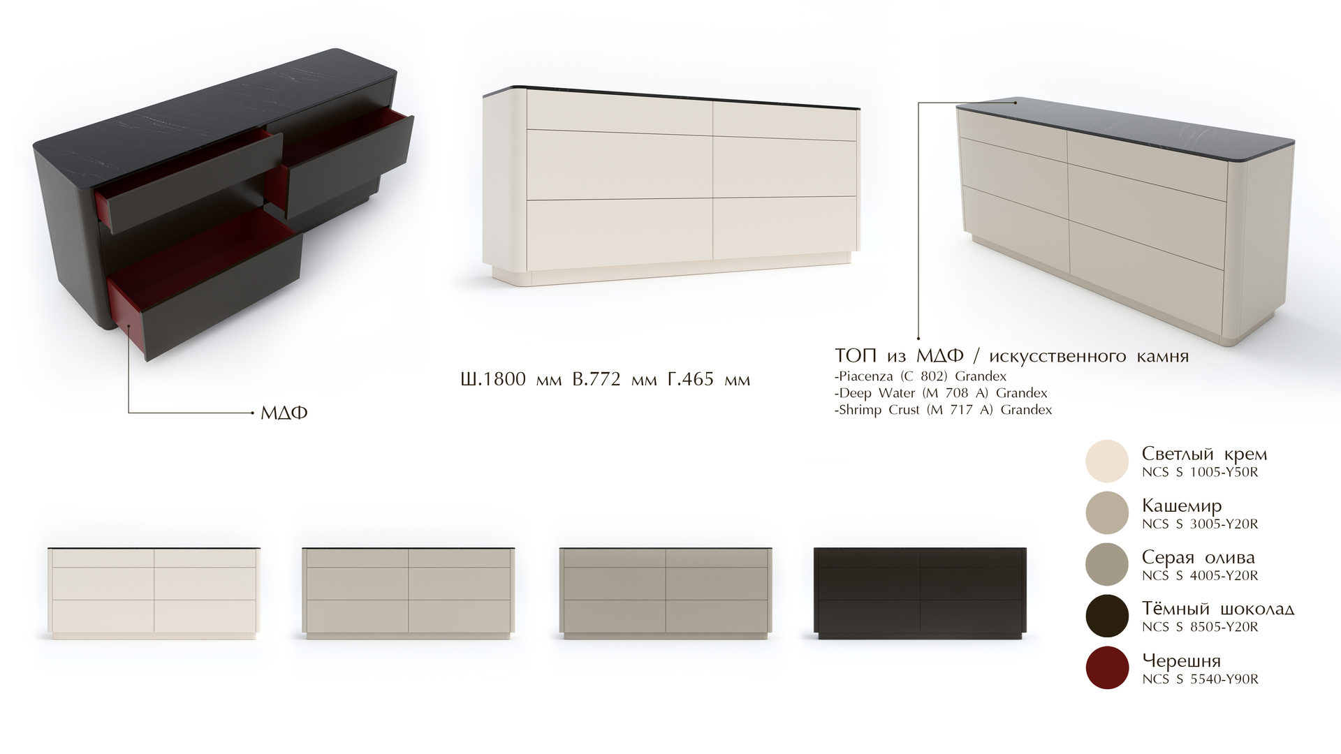 Fancy - это современная и стильная коллекция малых форм для спальни и гостиной. Благодаря скругленным боковинам создается гармония и уют в вашей комнате. На выбор несколько базовых цветов эмали, либо можно подобрать любой другой цвет по RAL или NCS каталогу. 2 варианта топа (эмаль или искусственный камень)