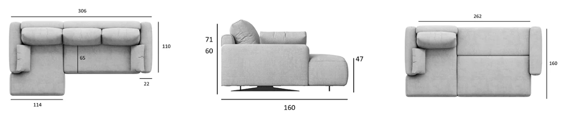 — Благодаря механизму Тик-так, диван образует спальное место размером 160х262 см