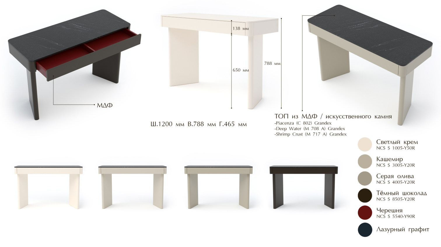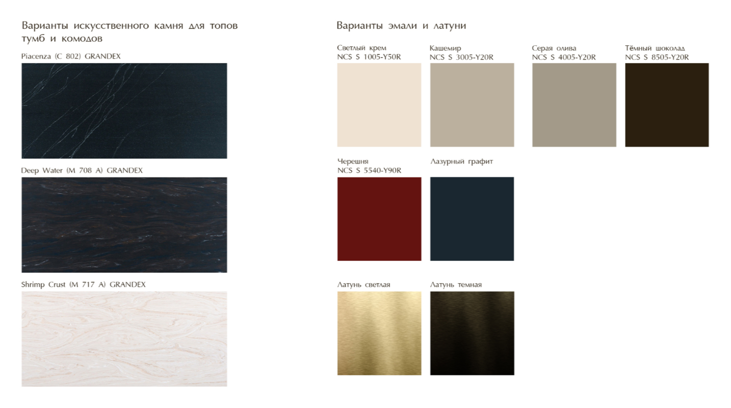 Fancy - это современная и стильная коллекция малых форм для спальни и гостиной. Благодаря скругленным боковинам создается гармония и уют в вашей комнате. На выбор несколько базовых цветов эмали, либо можно подобрать любой другой цвет по RAL или NCS каталогу. 2 варианта топа (эмаль или искусственный камень).